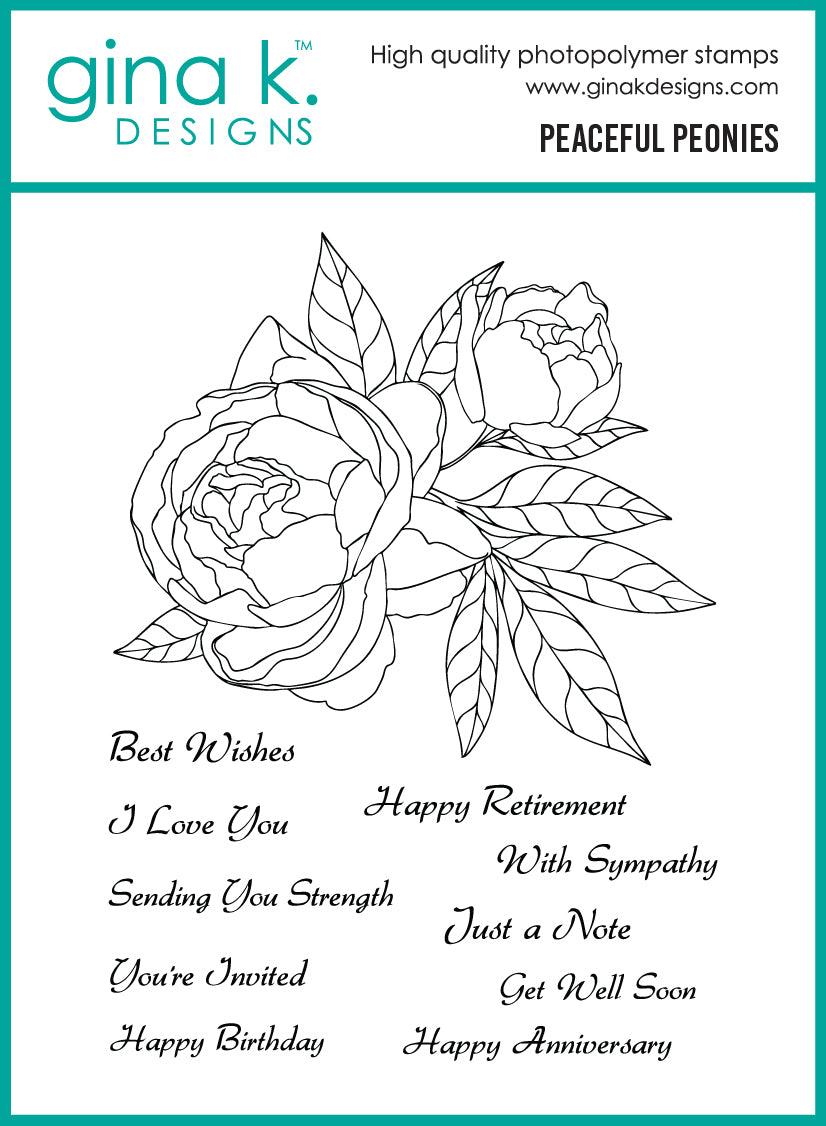 Peaceful Peonies is a stamp set by Hannah Drapinski. This set is made of premium clear photopolymer and measures 6" X 8". Made in the USA