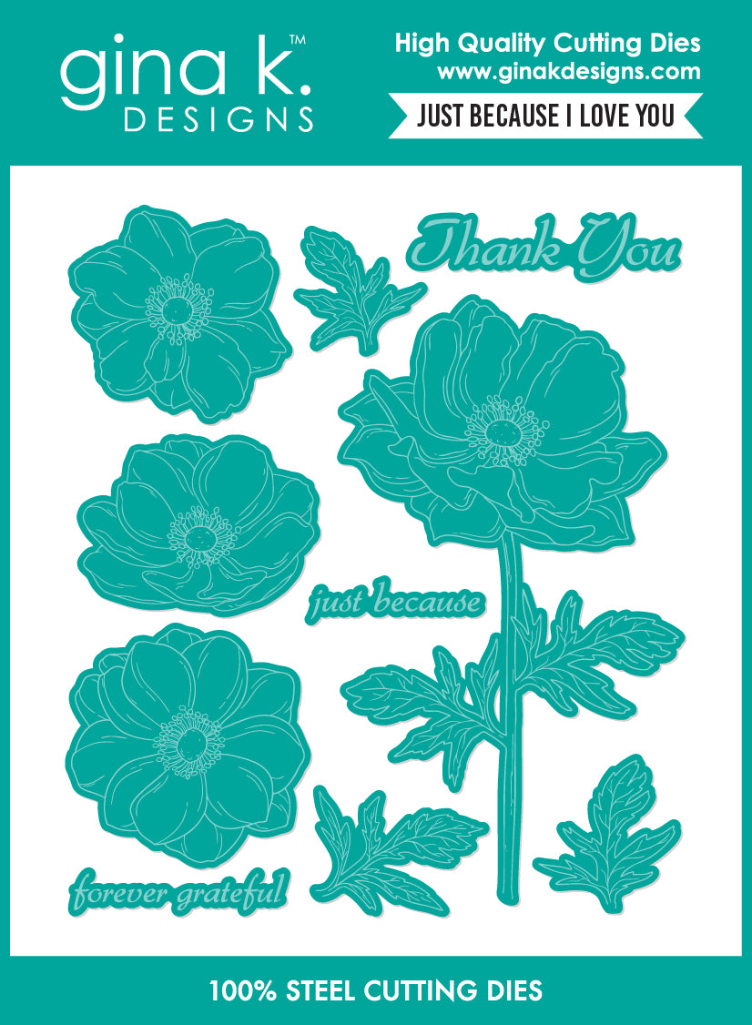 The Just Because I Love You Die set coordinates with the Just Because I Love You Stamp Set.