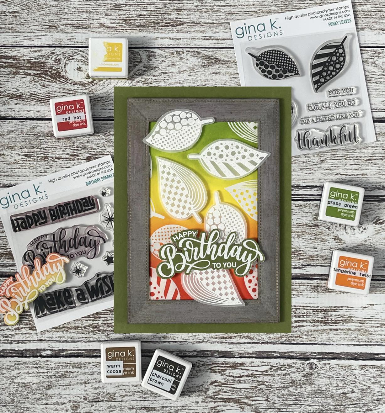 A Funky Leaves is a stamp set by Gina K Designs. This set is made of premium clear photopolymer and measures 4" X 4". Made in the USA